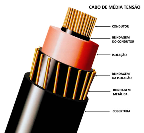 De forma geral, um cabo de média tensão é constituído por: