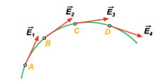 A linha de campo é tangente ao vetor campo elétrico em cada um de seus pontos e duas linhas de campo nunca se cruzam.