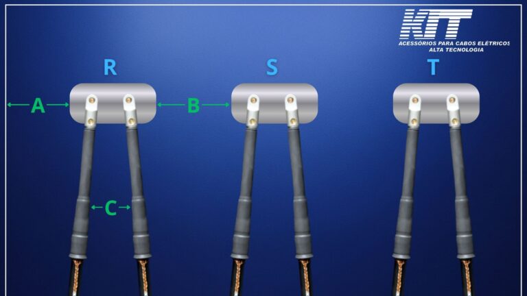 Em instalações de cabos em paralelo, as terminações dos cabos de mesma fase devem ser posicionados de modo a ficarem separados entre si de no mínimo da distância “C”, sendo “C”, igual a 30mm para tensões de até 20kV e 50mm para tensões de 25kV e 35kV.